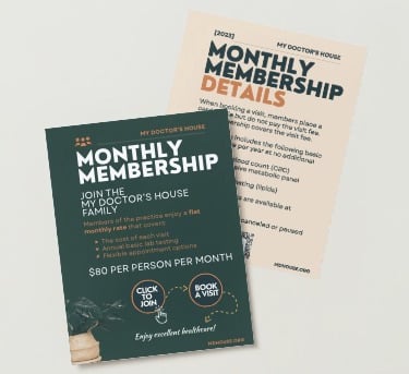 My Doctor's House members enjoy a flat $80 monthly rate that covers the cost of each visit, annual basic lab testing, and flexible appointment options.